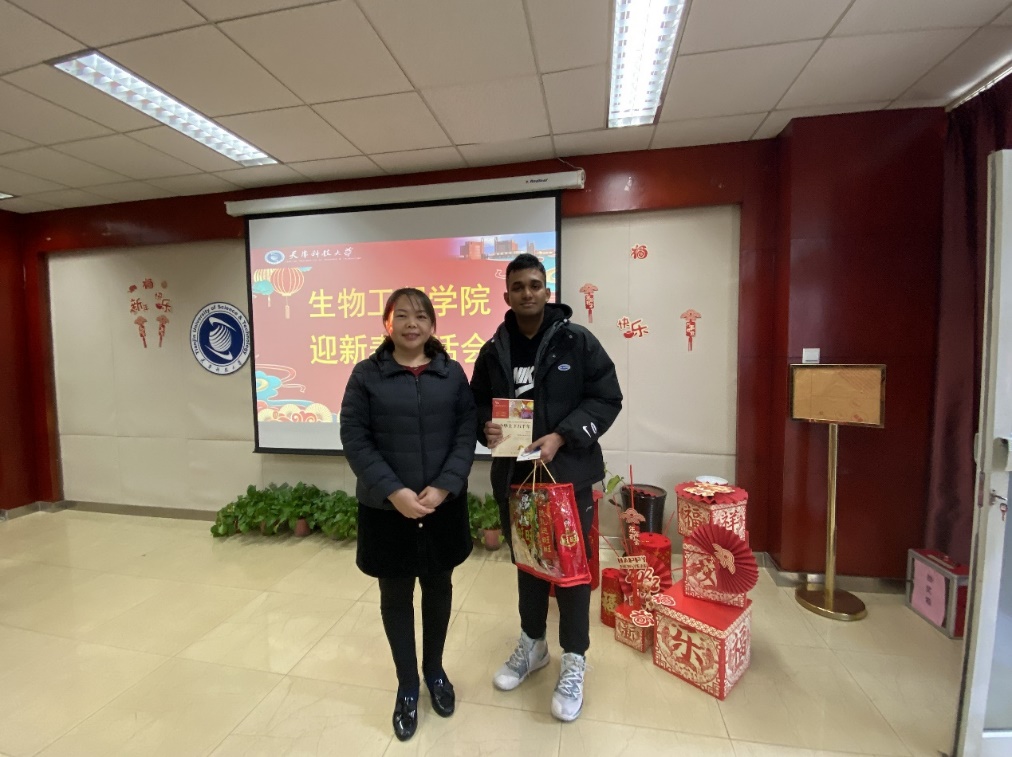 座谈会在轻松欢快的气氛中进行,首先学院24位留校学生发言,同学们逐一对个人留校学习生活情况进行介绍,发表留校感言和新春祝福,大家表示尽管因为学业、疫情等原因不能回家和家人团聚,但是却感受到来自学校和学院老师们家人般的关心和温暖,对学校、学院的暖心活动表示感激和感动。之后生物学院副院长滕玉鸥老师向留学生同学赠予新年礼物和寄语,教师代表刘夫锋老师、崔建东老师也号召同学们利用好这段特殊的时光,铭记住这一特殊的春节。