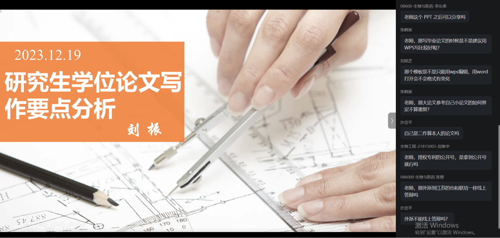 刘振副教授进行了研究生学位论文写作要点分析,通过对学位论文格式以及写作中的重点共性问题给予讲解,同时分享了自己多年来撰写学术论文、评阅学位论文的心得体会和经验。