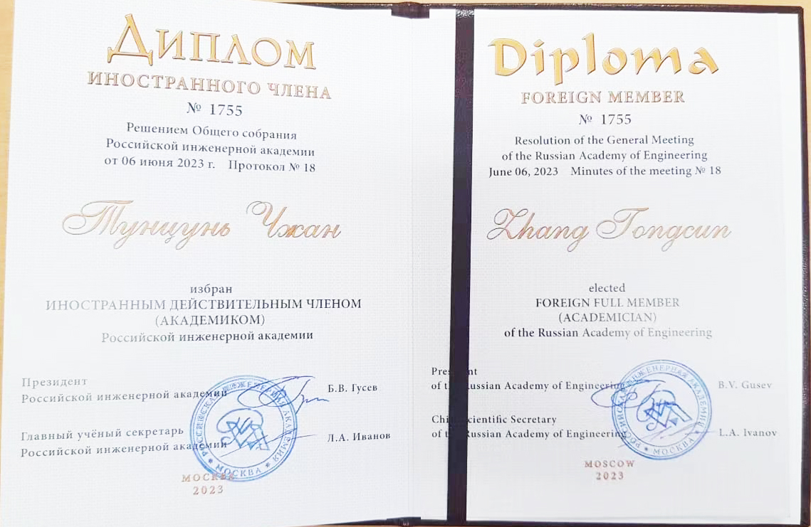 张同存教授当选俄罗斯工程院(Russian Academy of Engineering,RAE)外籍院士(Foreign Full Member,Academician)。俄罗斯工程院院长B.V.Gusev院士发来贺信,祝贺张同存教授因在生物医学领域尤其是CAR-T细胞治疗肿瘤和艾滋病方面的突出贡献而当选俄罗斯工程院外籍院士,并希望他在将来能够取得更多的科技创新成果,并为中俄两国科技合作的可持续发展做出积极贡献。