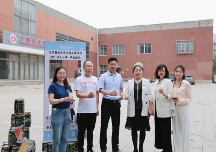 毕业学子与学院教师纷纷在学院特制的“动人心啤毕业献礼”主题背景板处合影留念,手持各式啤酒杯的拍照板,留下青春年华中最美好的回忆。