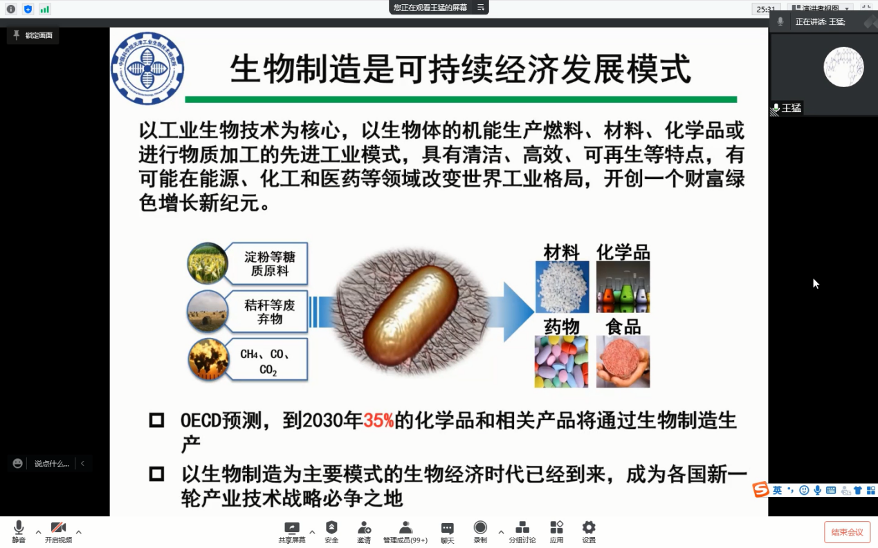 积极配合学校开展“科技赋能,‘疫’路相伴”系列云端讲座,特邀请中国科学院天津工业生物技术研究所王猛研究员于1月27日在云端做学术报告。本次讲座由色情导航