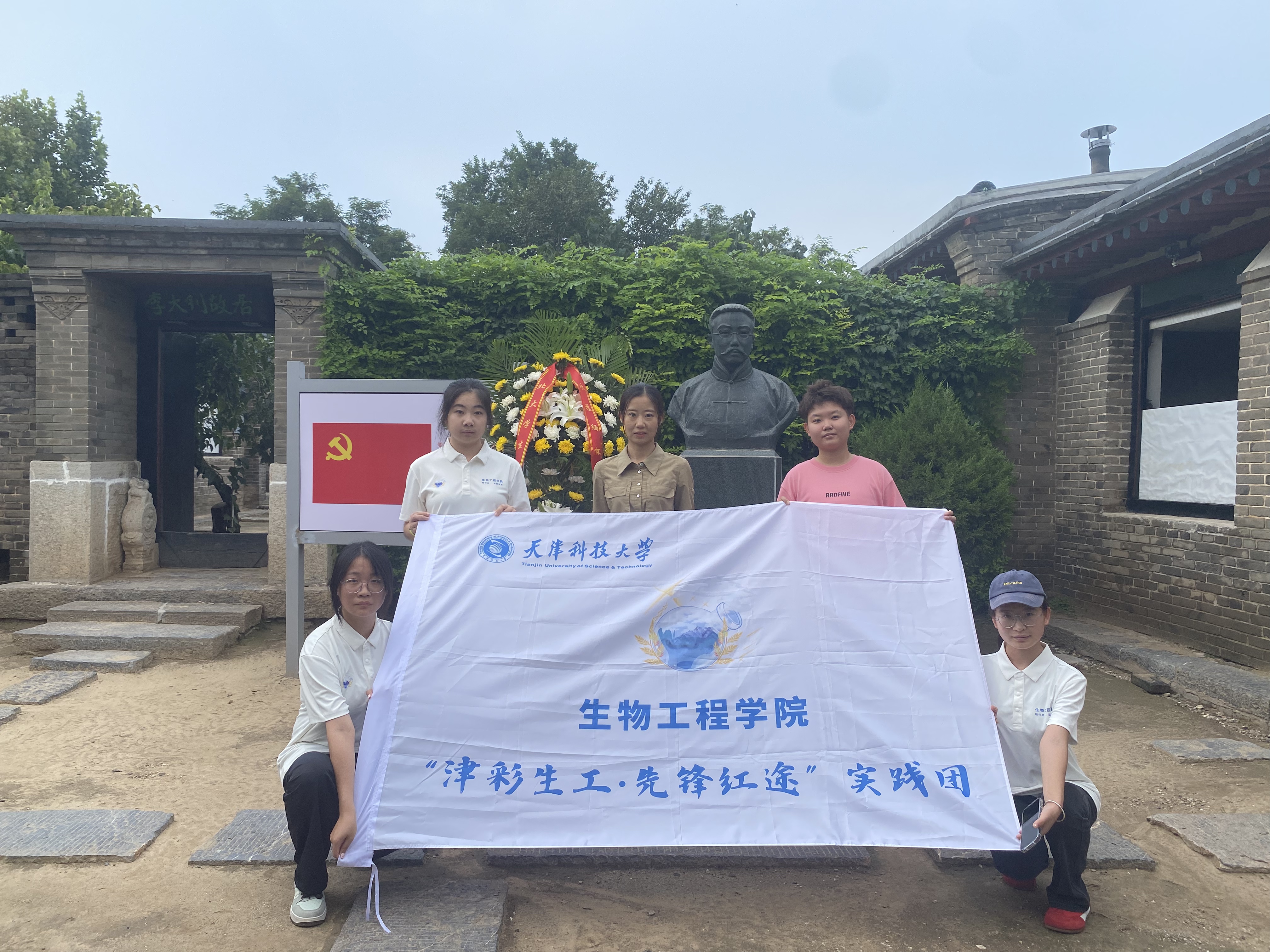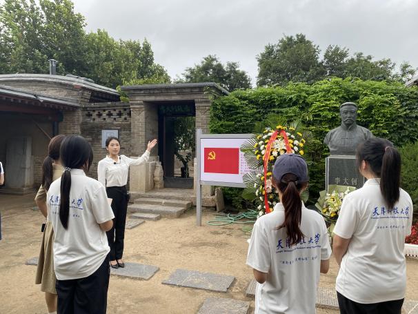 “津彩生工・先锋红途”实践团前往河北省唐山市乐亭县大黑坨村,开展“追寻红色足迹,传承大钊精神”红色研学实践活动。