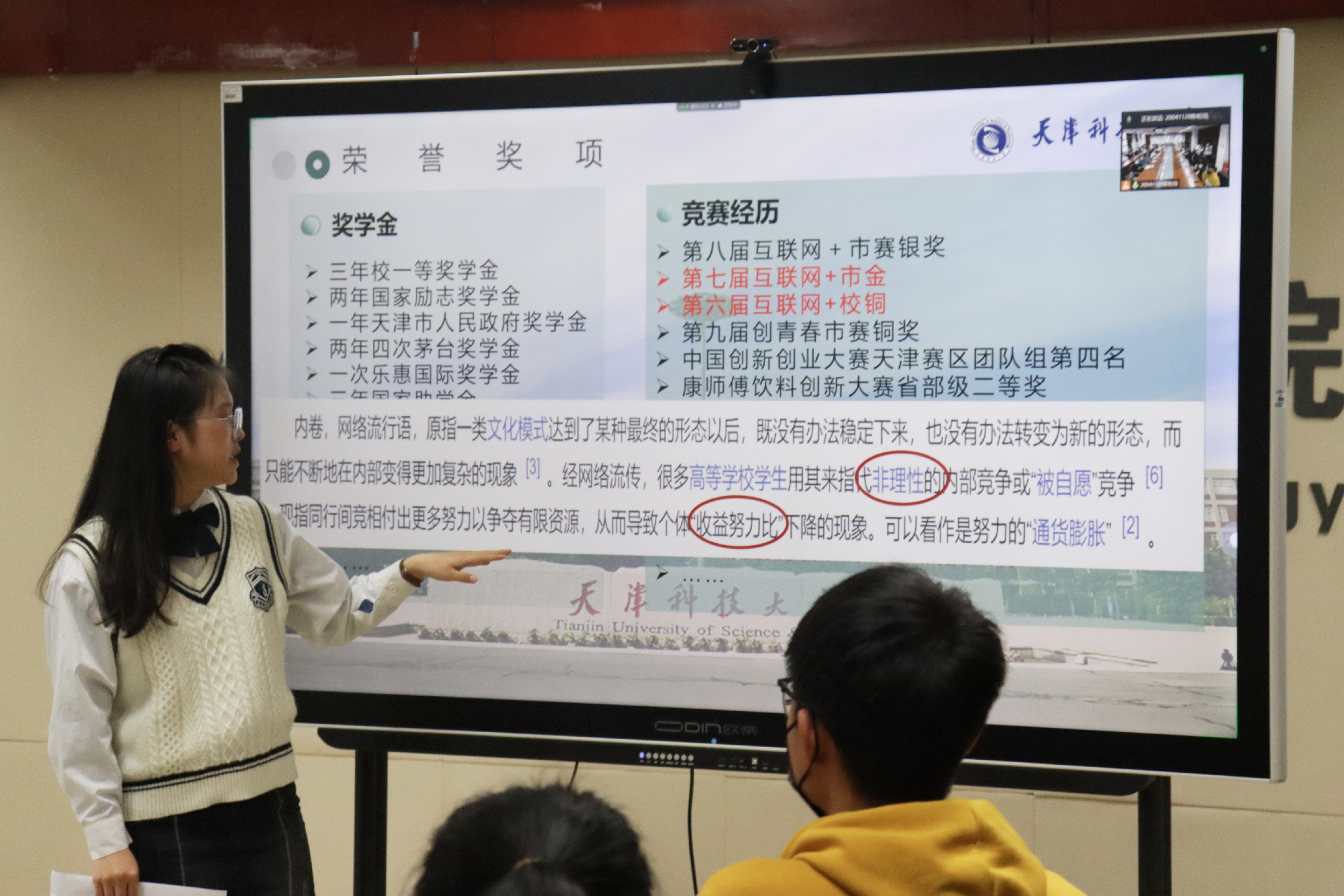 接下来,2019级中英合作办学专业吴子航和2019级“卓越人才实验班”张淑慧同学,分别以“严以修身 严以律己”和“别管别人有什么 知道自己要什么”为主题,梳理出学习目标、学习方法、学习动力和学习心态等,与学弟学妹们进行了分享,并着重强调了高等数学、化工原理等较难科目的学习方法。目前吴子航已经推免至清华大学,张淑慧推免至华中科技大学。