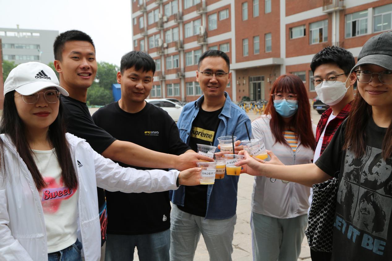 毕业学子与学院教师纷纷在学院特制的“动人心啤毕业献礼”主题背景板处合影留念,手持各式啤酒杯的拍照板,留下青春年华中最美好的回忆。