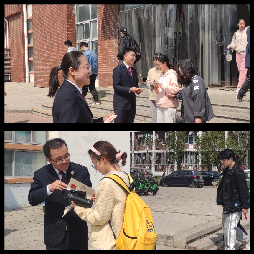 中午12点到12点40,在学校新食堂外的小广场,通过拉设国家安全宣传横幅,向师生发放国家安全宣传手册和手提袋,国家安全知识采访问答的方式,检察官们和色情导航