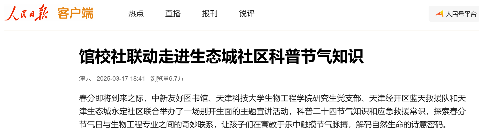科普品牌入选2025年天津市全域科普品牌宣传活动名单。