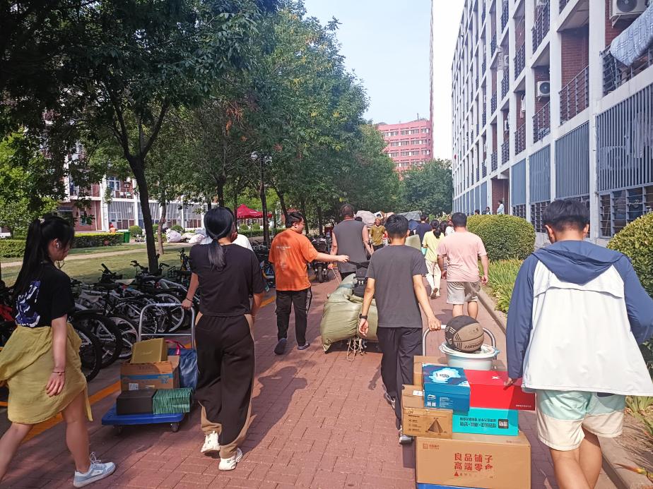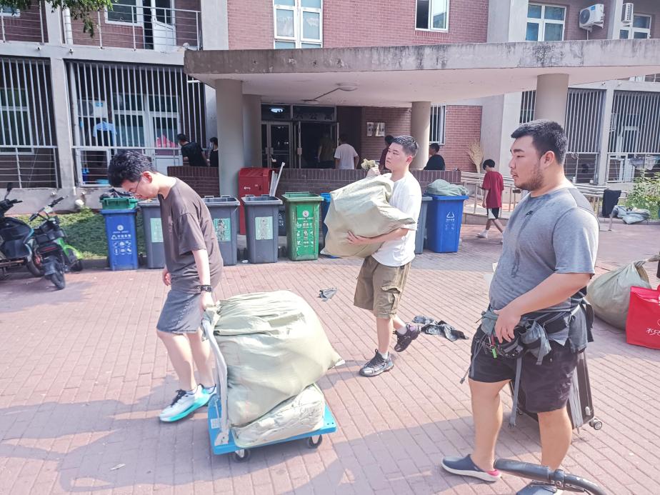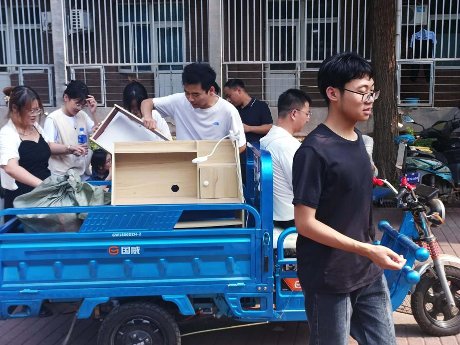 启动2021级男生宿舍搬迁工作,2023、2022级学生党员志愿者及暑期留校考研学生积极参与其中,共同助力搬迁工作。
