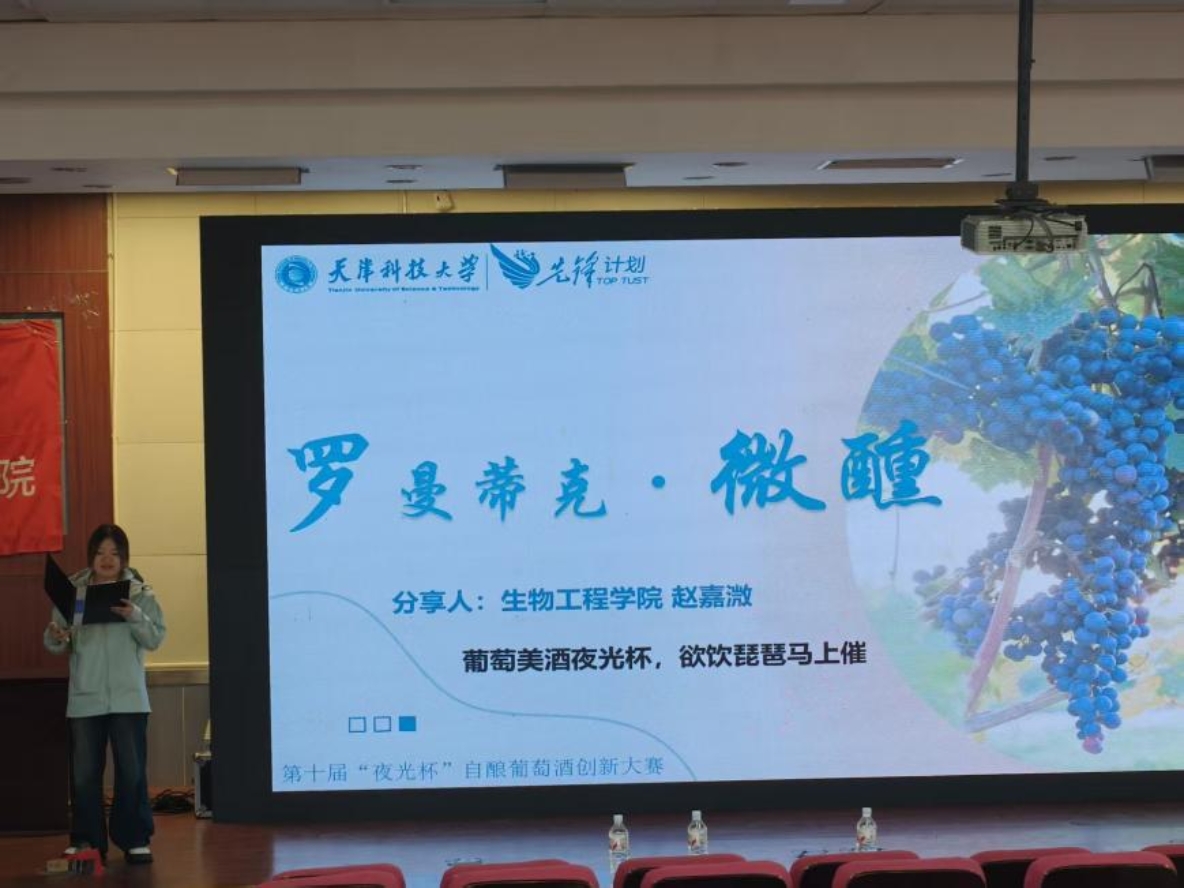 专业教师韩晓和往届优秀选手为现场同学带来兼具专业性与趣味性的葡萄酒文化与酿造宣讲。