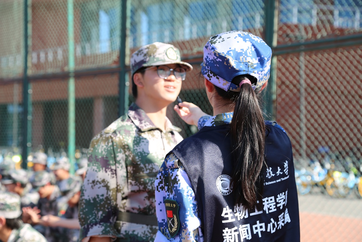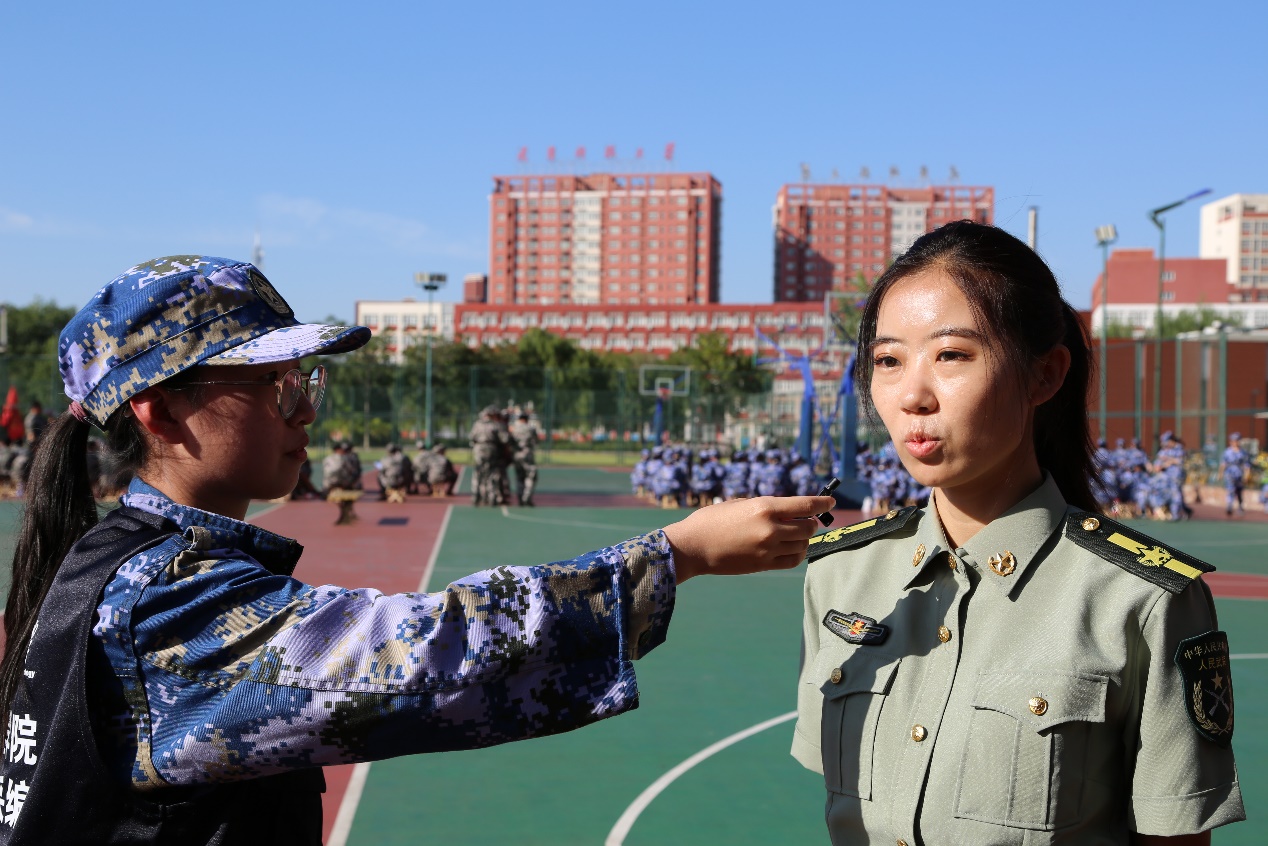 休息时,编辑部记者对部分同学以及老师们进行了采访。在面对“使用一个词来形容你的军训生活”的问题时,同学们热情高涨,积极回答问题。同学们普遍使用“充实”一词,他们认为每天的军训安排很丰富,过程很有意义,可以强健自己的体魄,磨炼自己的意志。同时,同学们对于军训生活与四年大学生活充满期待,他们希望可以在军训生活与未来的大学四年生活中挥洒自己的汗水,结出胜利的果实。