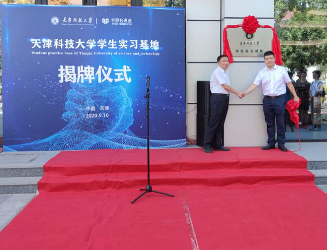 的建校历程,介绍了我校突出“坚持拓展轻工特色,精心培育行业中坚,矢志服务国计民生”的办学特色。罗院长表示与世界名酒荟(天津)有限公司合作建立的实习基地对学生在生物发酵方面的理论知识、实践能力及文化素养的提升都将发挥重要作用,将为培养新形势下社会需要的创新型、应用型人才搭建良好的平台。