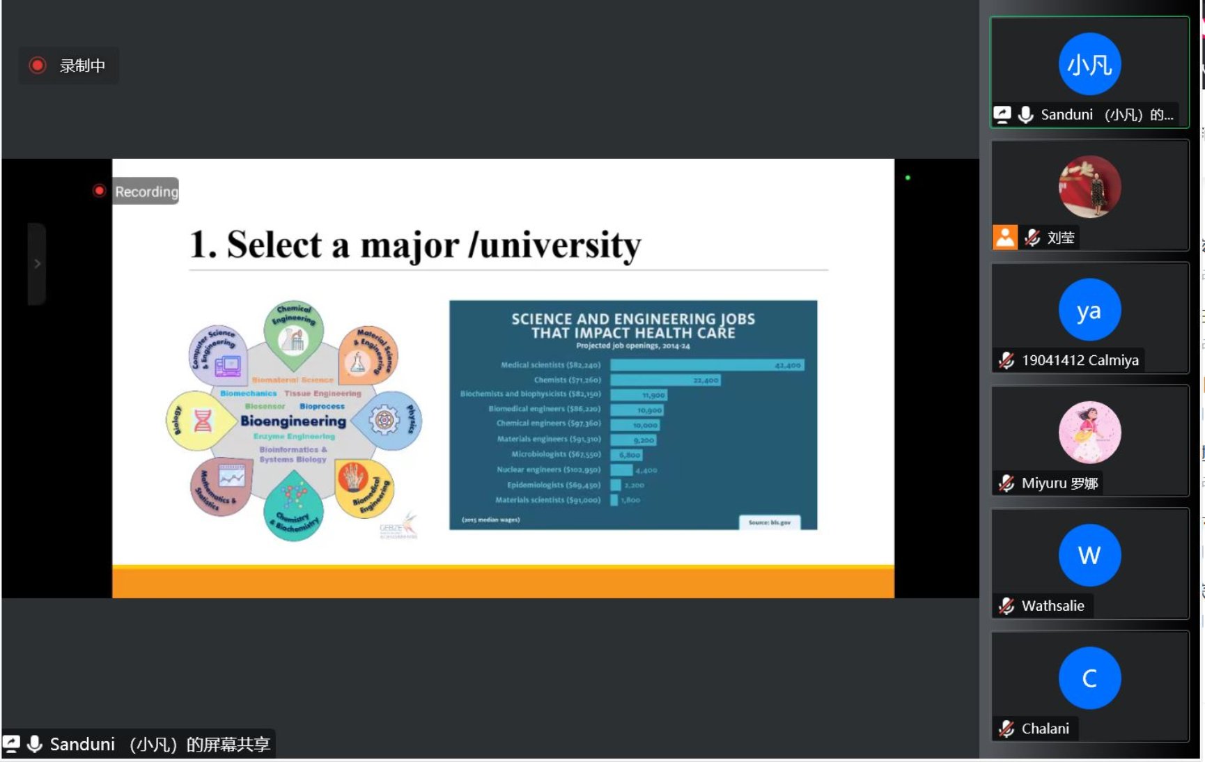 斯里兰卡本科生DE ALWIS SOORIYA ARACHCHIGE SANDUNI SAMUDIKA (中文名:小凡)分享“如何在中国顶尖大学和研究所申请硕士项目”。报告以在线形式开展,色情导航