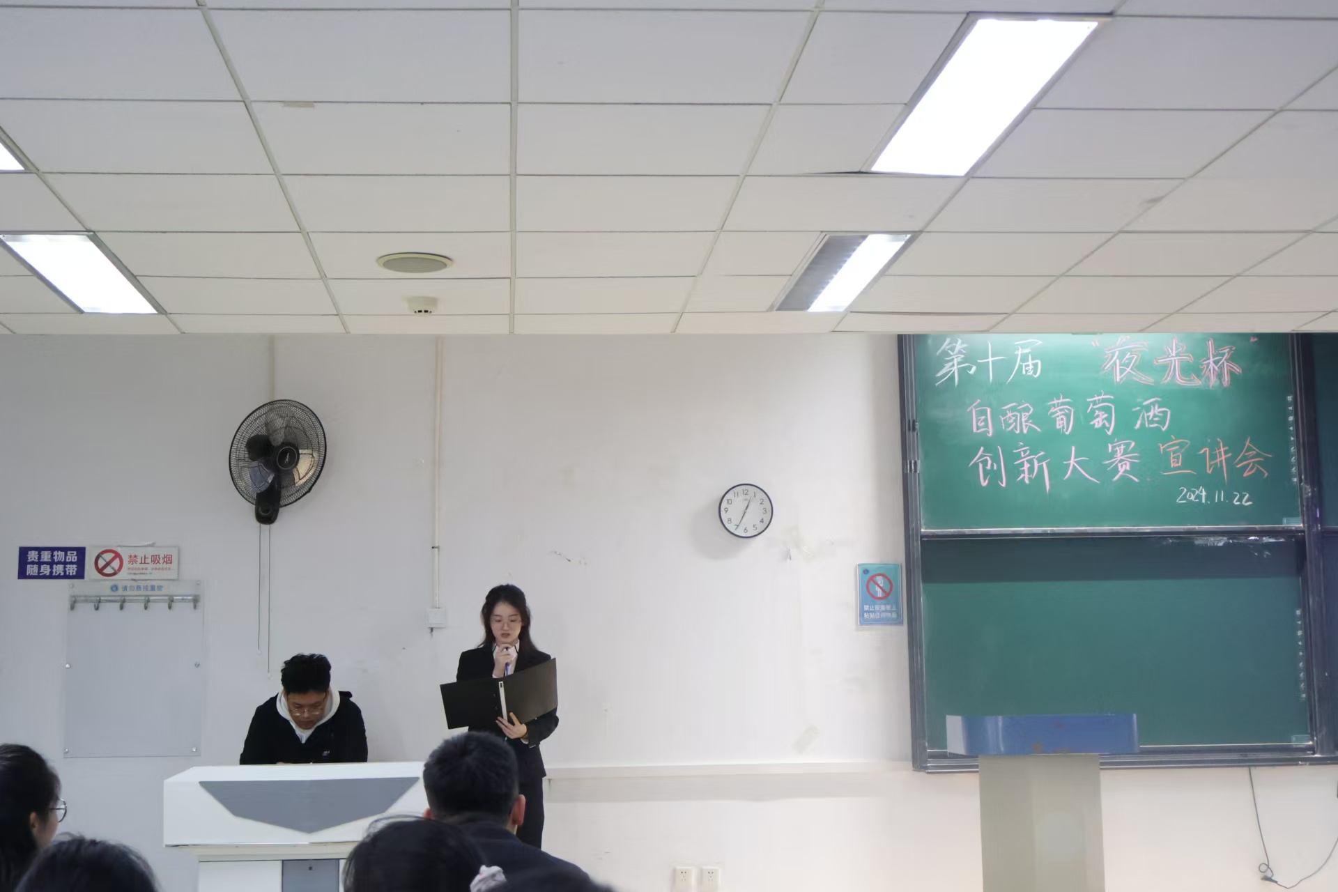 第十届“夜光杯”自酿葡萄酒创新大赛在图书馆6阶梯正式拉开帷幕。