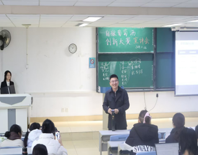 专业教师韩晓为现场同学带来别开生面、充满惊喜的葡萄酒文化与品鉴宣讲。韩老师以深入浅出的方式为同学们深入剖析了葡萄酒的历史文化脉络、复杂精妙的酿造工艺以及极具艺术感的品鉴技巧。更为精彩的是,韩老师现场开启了一瓶葡萄酒,为学生们现场讲解分享。同学们仿若置身于一个充满魅力与奥秘的葡萄酒世界,沉浸其中,不时地提出问题,与老师积极互动,现场气氛热烈似火。