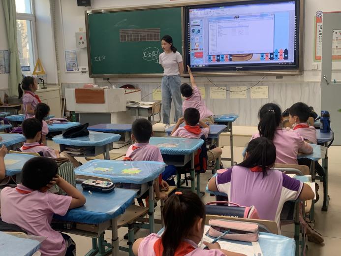 双减课后服务志愿者2022级本科生王绍涵以家乡美食山东馒头为引例,通过与视频的巧妙结合生动形象的向同学们详尽介绍了人体所需的七大营养素,倡导孩子们遵从居民膳食宝塔合理选择食物。