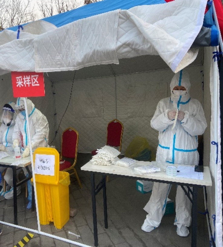 除图中老师外,刘夫锋老师、崔建东老师、于爱群老师、李庆刚老师、刘振兴老师、李中媛老师、马倩老师、刘蛟老师、谢周杰老师、胡晓静老师和李欣老师也在疫情刚开始就积极投身到社区的疫情防控的服务保障中,为抗击疫情贡献着自己的一份力量。赵津莹、杜英杰,王凤华三位老师坚守学校核酸检测一线,积极协助维持入场秩序,组织在校师生员工进行了三轮核酸检测。